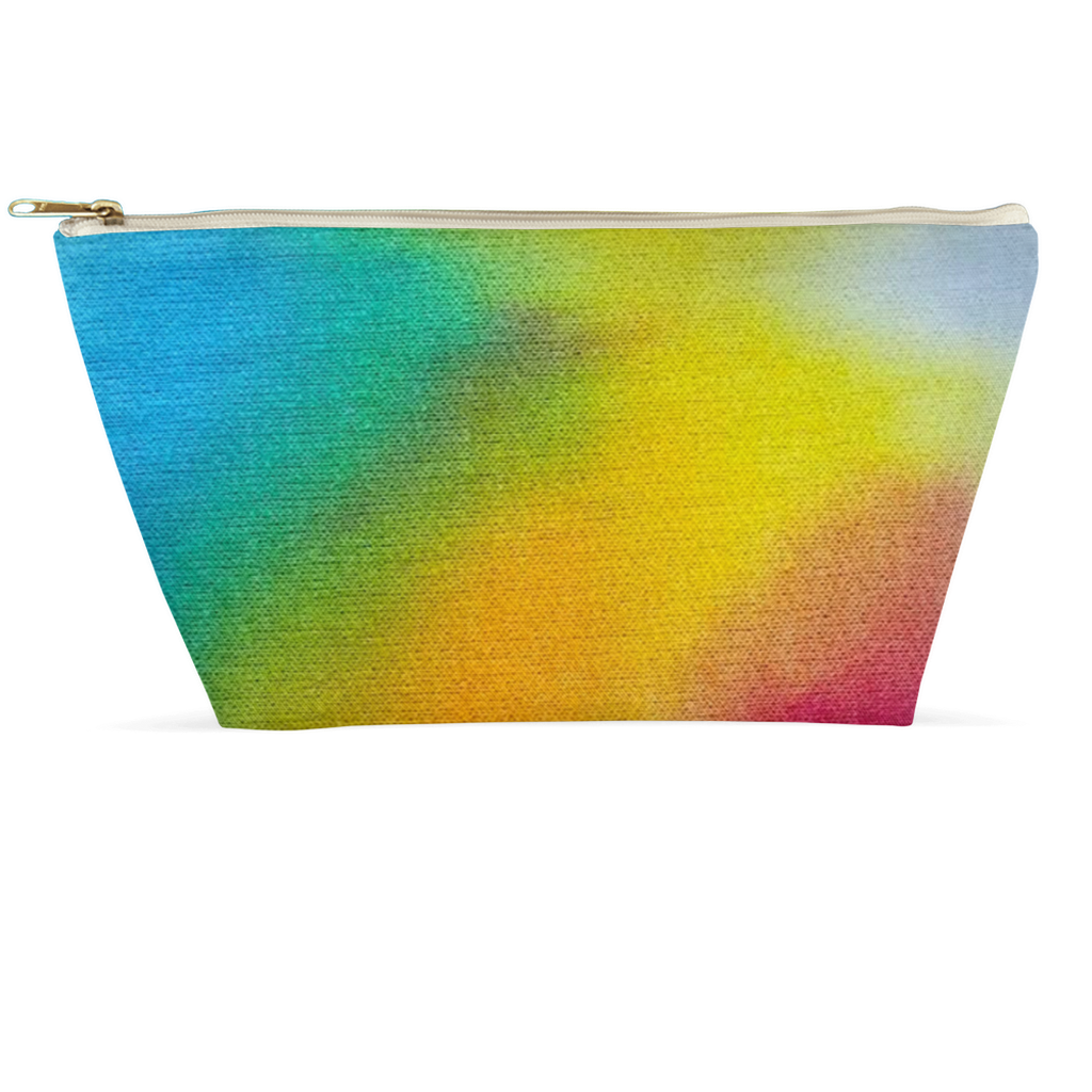 These durable 100% polyester poplin fabric bags feature a gold zipper. Made in USA. Care instructions: Machine washed on cold, no bleach. Tumble dry on low. Do not iron or dry clean.
