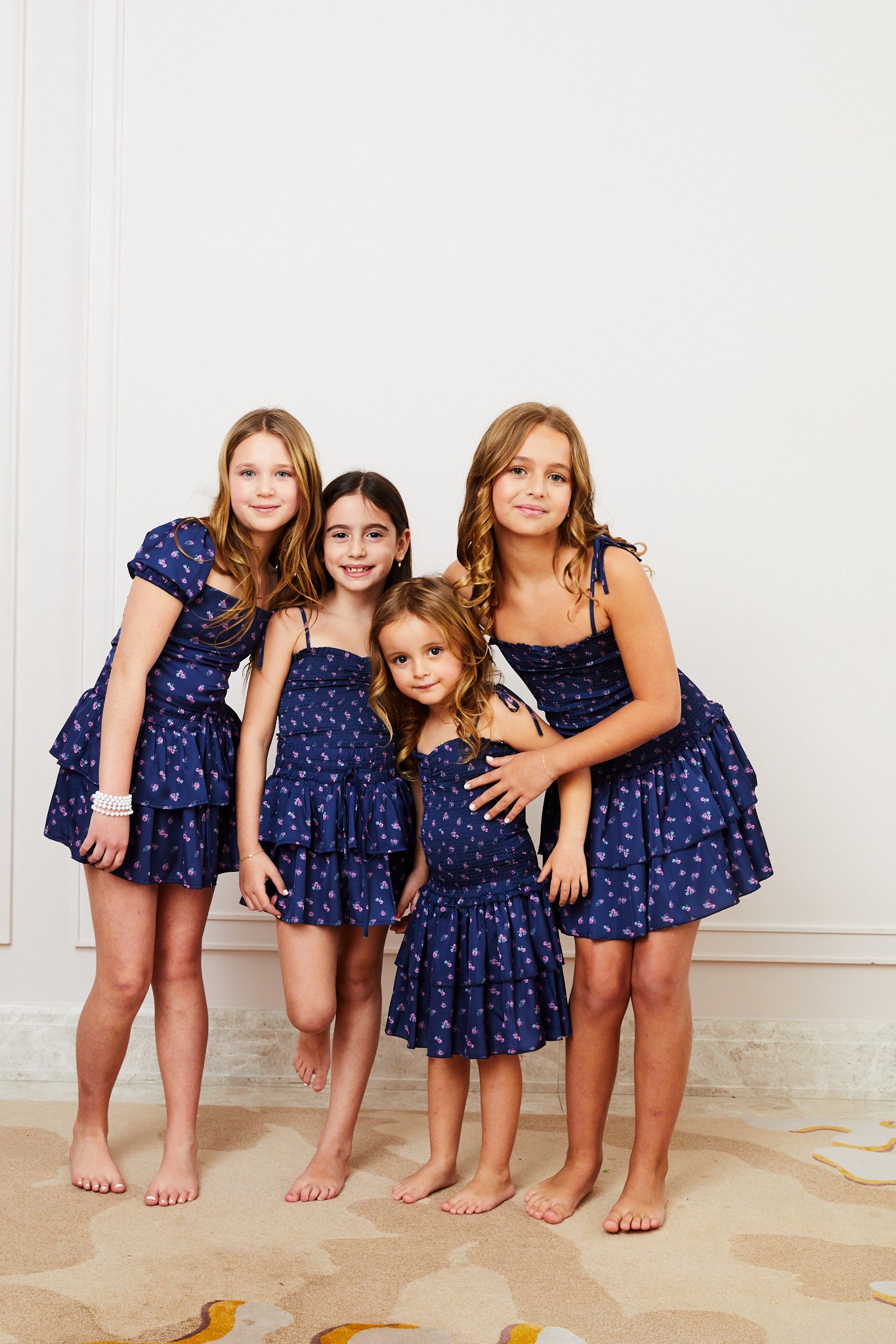 Lola Satin Smocked Ruffle Dress - Navy Rose