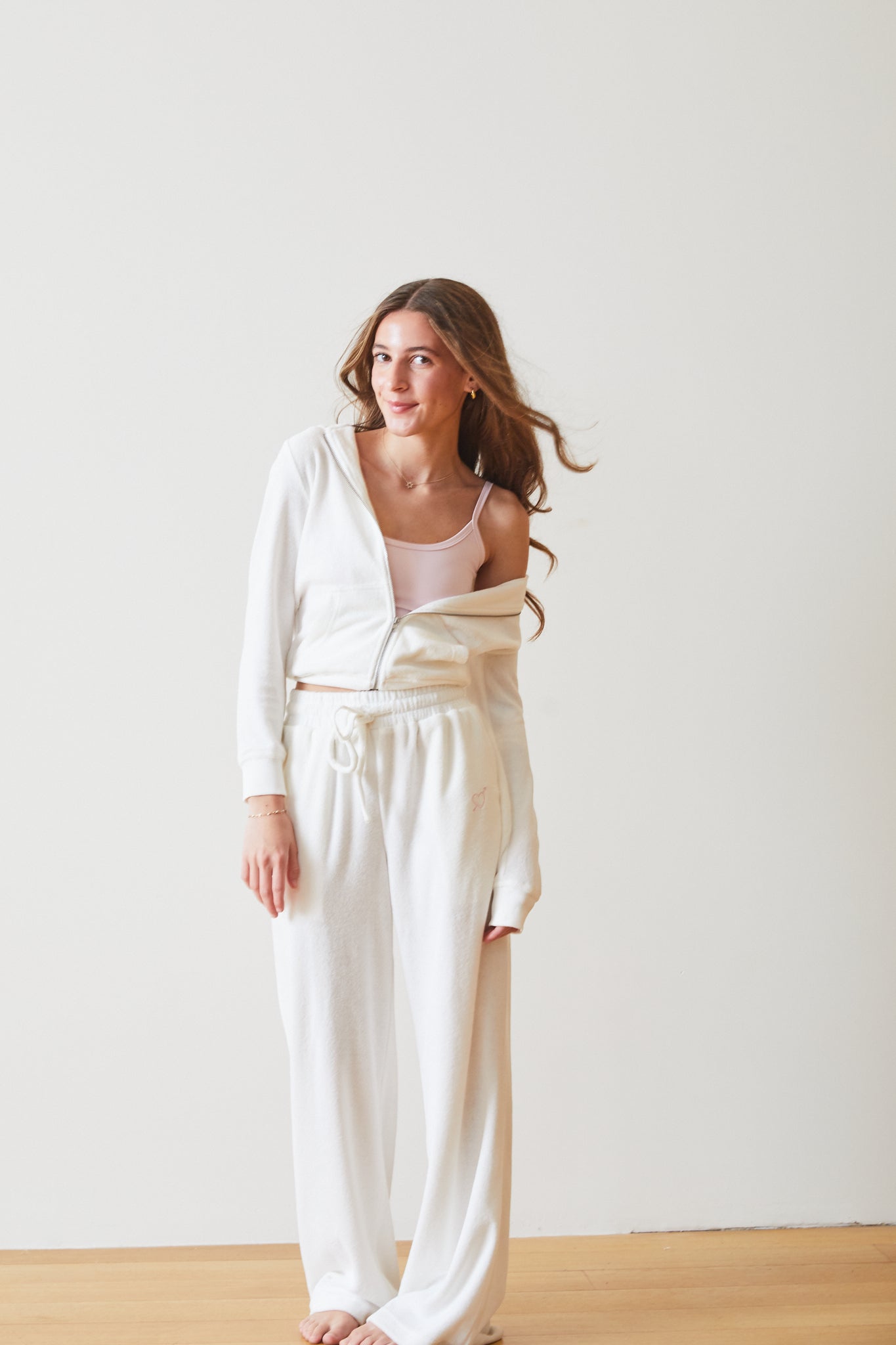 Elle White With Heart & Harrow Terry Zip Up Hoodie Sweatshirt