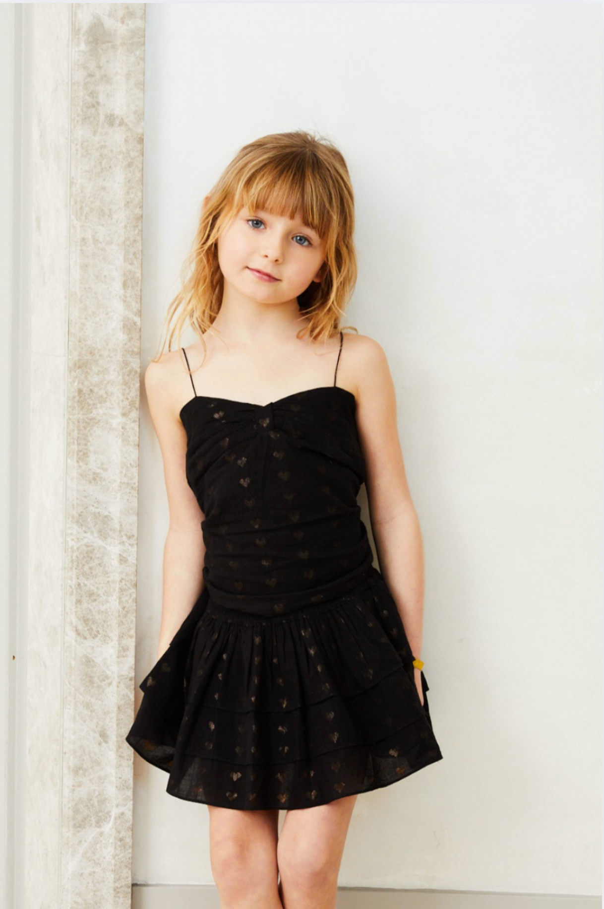 We are in love with the Gemma! Smocked at the top this gem is made with beautiful heart lurex. Perfect with one of our matching tops. You will feel so beautiful and special from the moment you put it on! We just love the beautiful shine of the gold lurex hearts!