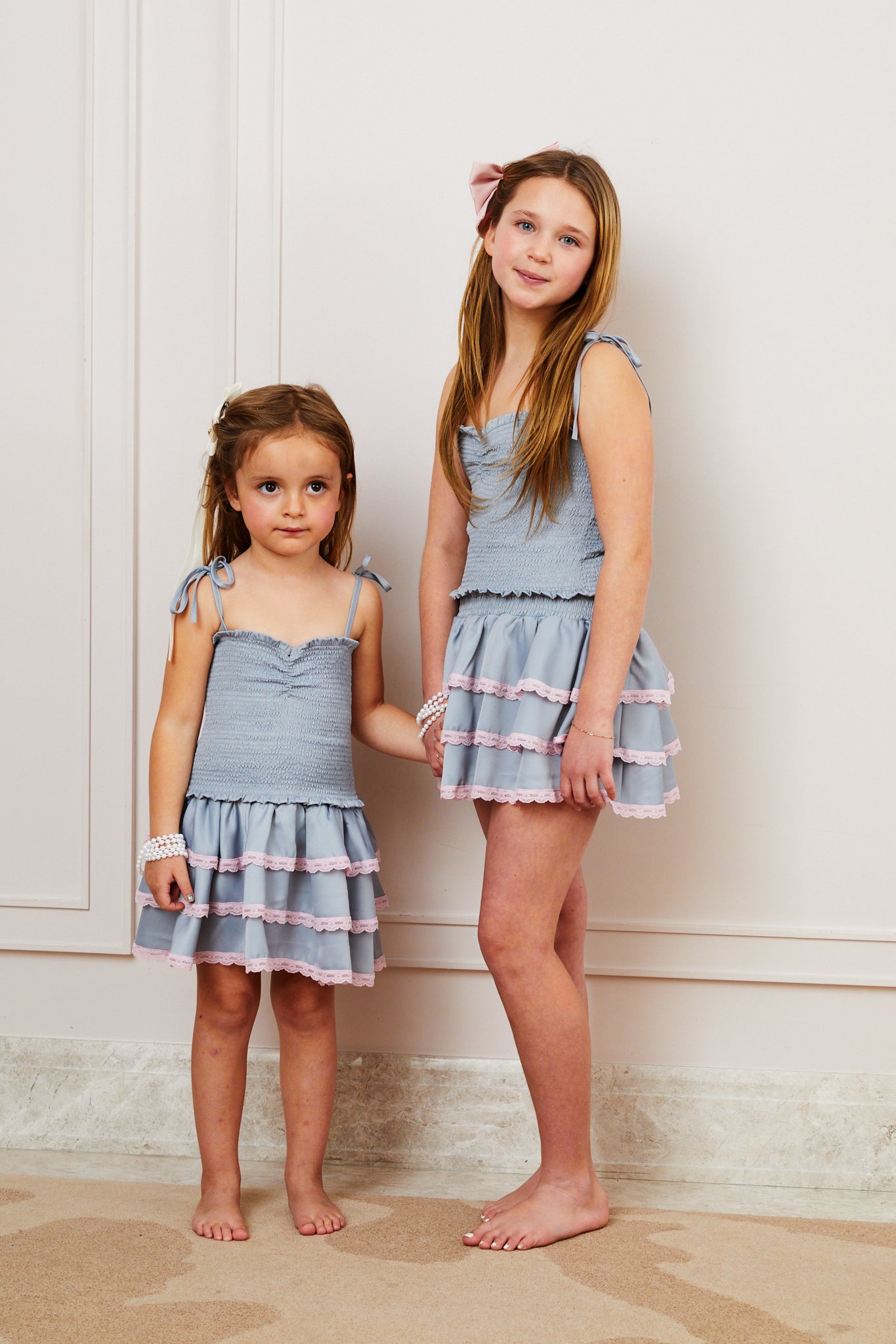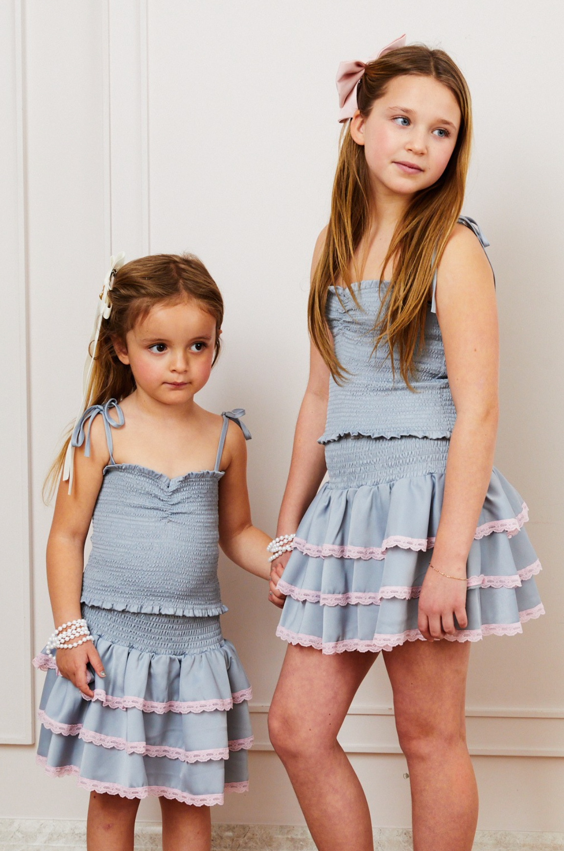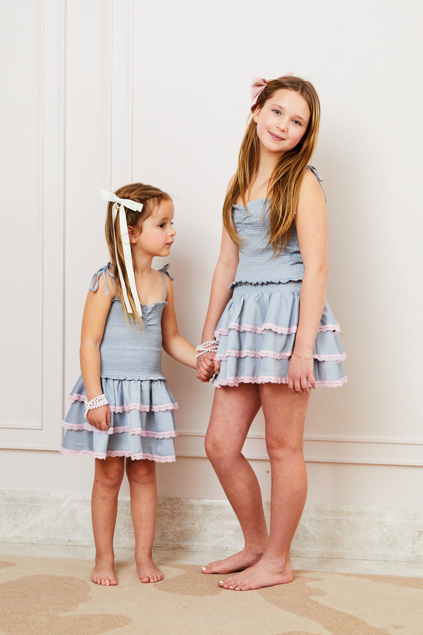 Beyond gorgeous in the Gemma in Satin! We love the smocked waist, lace trim and ruffle satin! Perfect with one of our matching tops. You will feel so beautiful and special from the moment you put it on! Satin is so silky and comfortable to wear!