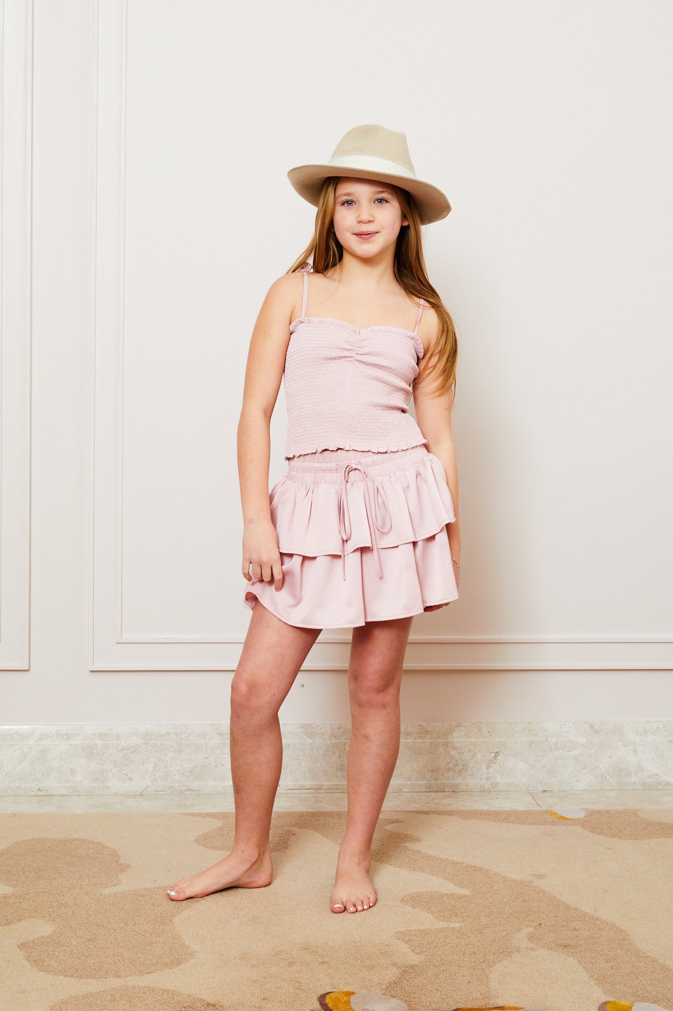 The Georgia Satin smocked top, ties in a pretty bow at the shoulder. This sweet top is so east to wear and goes perfectly with our gorgeous skirts. The satin is so silky. It can easily also pair back to your favorite jeans. It is that special top that you will want to wear all the time!
