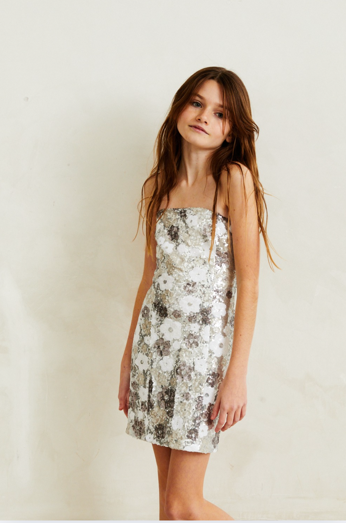 The Maizy is literally the star of the show! This is a special piece you will love to wear and dance in! We love the flower sequins in silver! Omg. It is just too perfect!