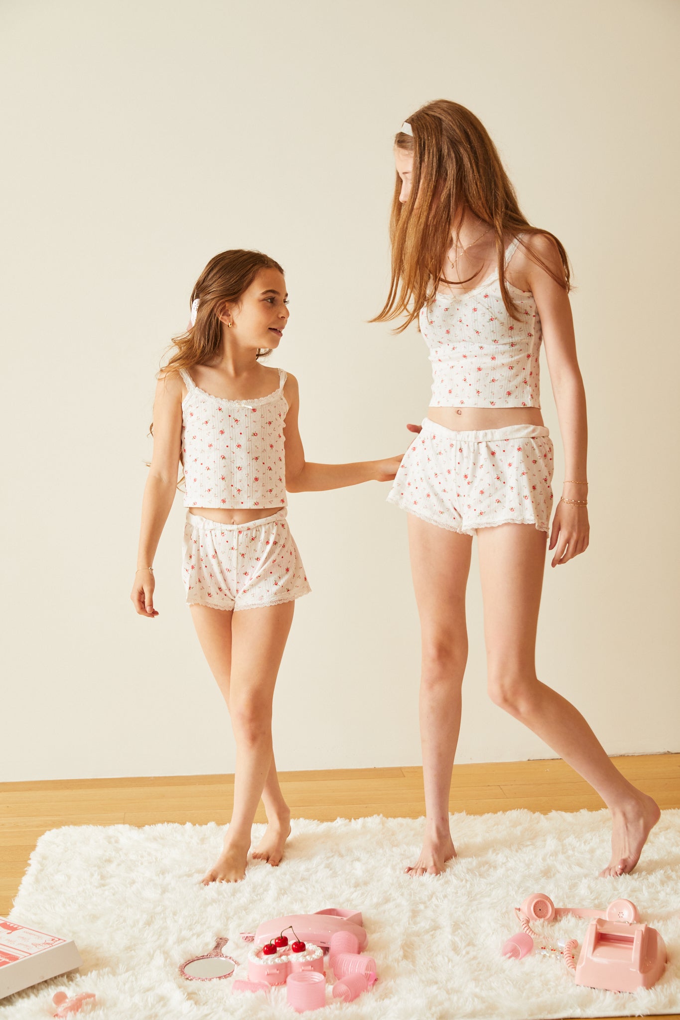 Teddy White With Rose Pointelle Shorts